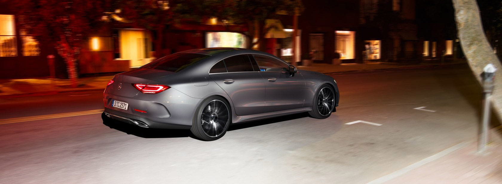 Bentuk buritan belakang yang disajikan Mercedes-Benz CLS 350 AMG Line 2018 terasa merefleksikan desain coupé premium Mercedes-Benz. Taillight LED didesain pipih dan terpisah dua bagian, dimana masing-masing tailight dibekali Edgelight backlighting yang tampak menyerupai kristal serta menciptakan sebuah efek tiga dimensi.